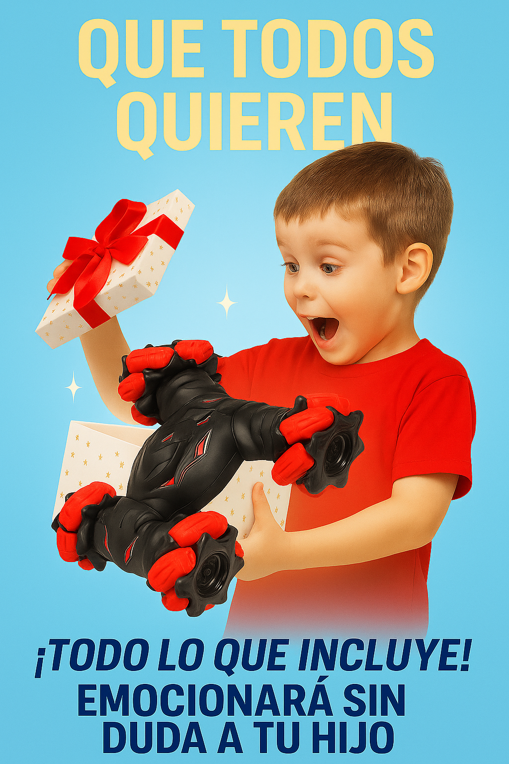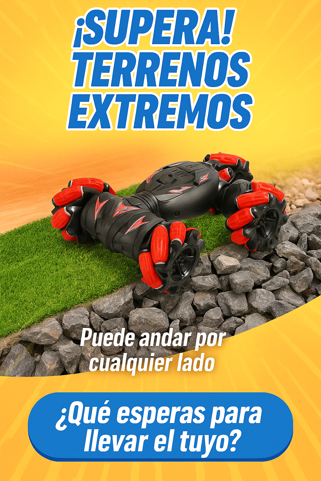 Su estructura es súper resistente 💪, ideal para juegos fuertes, caídas y choques. ¡Nada lo detiene! Cada giro 360° 🔄, cada salto y cada carrera hacen que los niños vivan una aventura nueva todos los días.